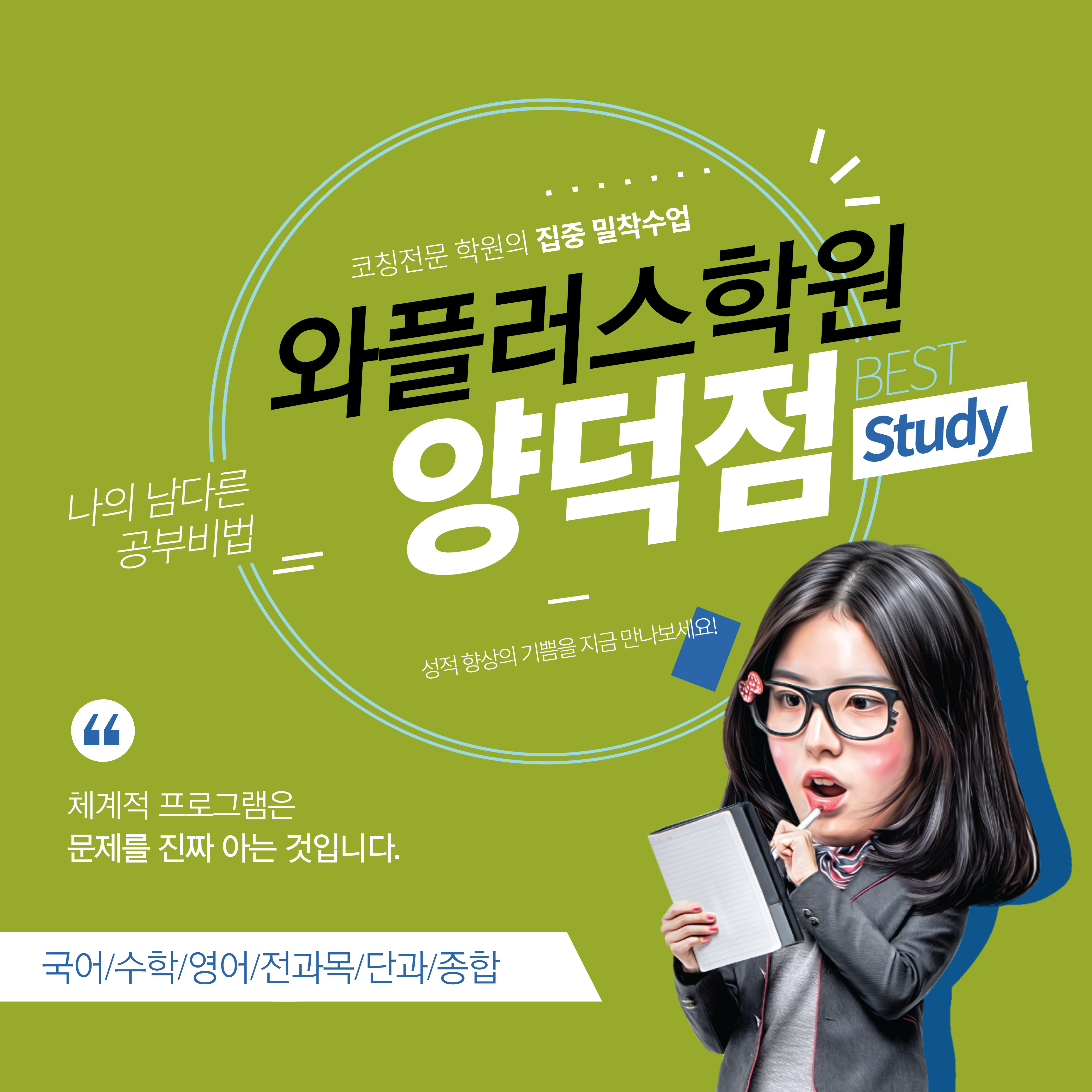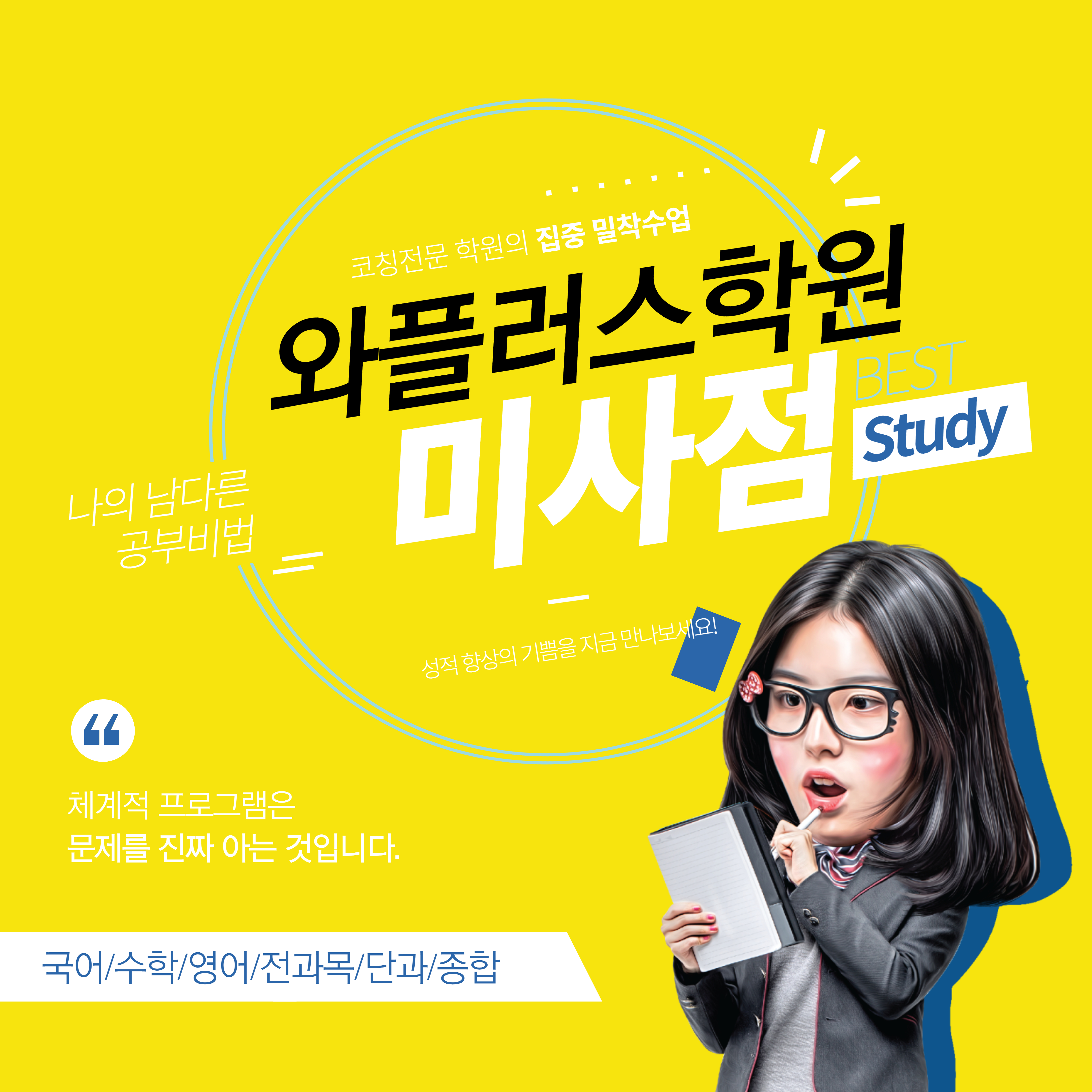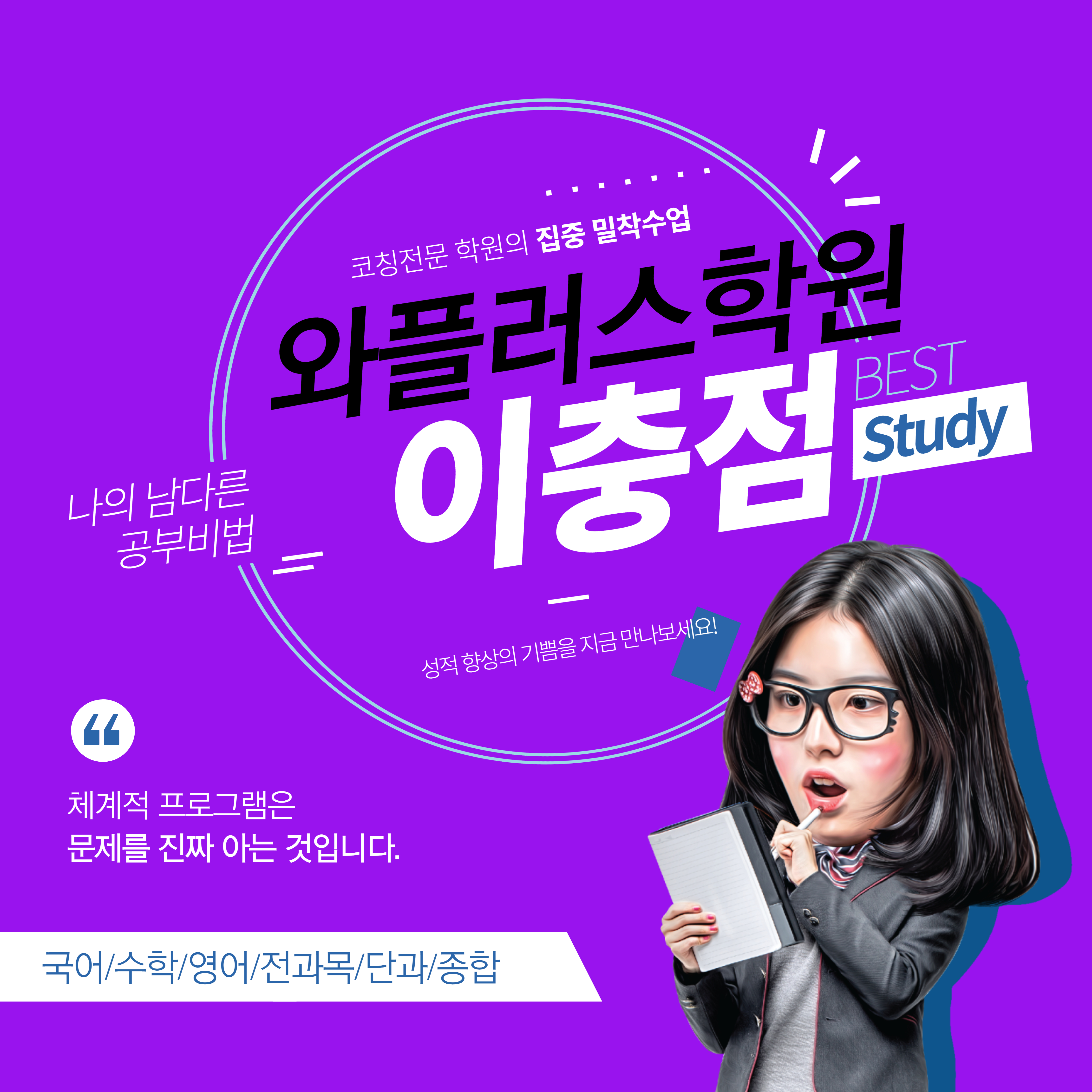 주소 : 화성시 반송동 동탄원천로 163 503호 반송점 와와학습코칭학원 석우초, 석우중, 예당초, 예당중, 예원초에서 5분거리!! 우리은행, 맘스터치 건물 5층! WA+학습코칭센터 학원 소개 일반 학원과 다른 1대1 개인별 수준에 맞춤 수업 국어&영어&수학, 전과목 학습코칭학원 입니다! 상담이 밀려있어서 100% 예약후 방문 상담이 가능합니다. WA+ 학습코칭학원 소개 및 장점 1. 풍부한 경험과 교육자료를 기반으로 내신/ 입시 완벽 대비합니다. 2. 지역 학교 내신동향은 물론 검증된 교수법과 자체 문제 은행을 보유하고 있습니다. 3. 한수업에 3~8명만 수강인원을 받습니다.(예약제) 4. 개인별 학습 커리큘럼, 개인별 맞춤 교재로 수업합니다. 5. 개별적으로 학습 플래너 관리를 진행합니다. 6. ..