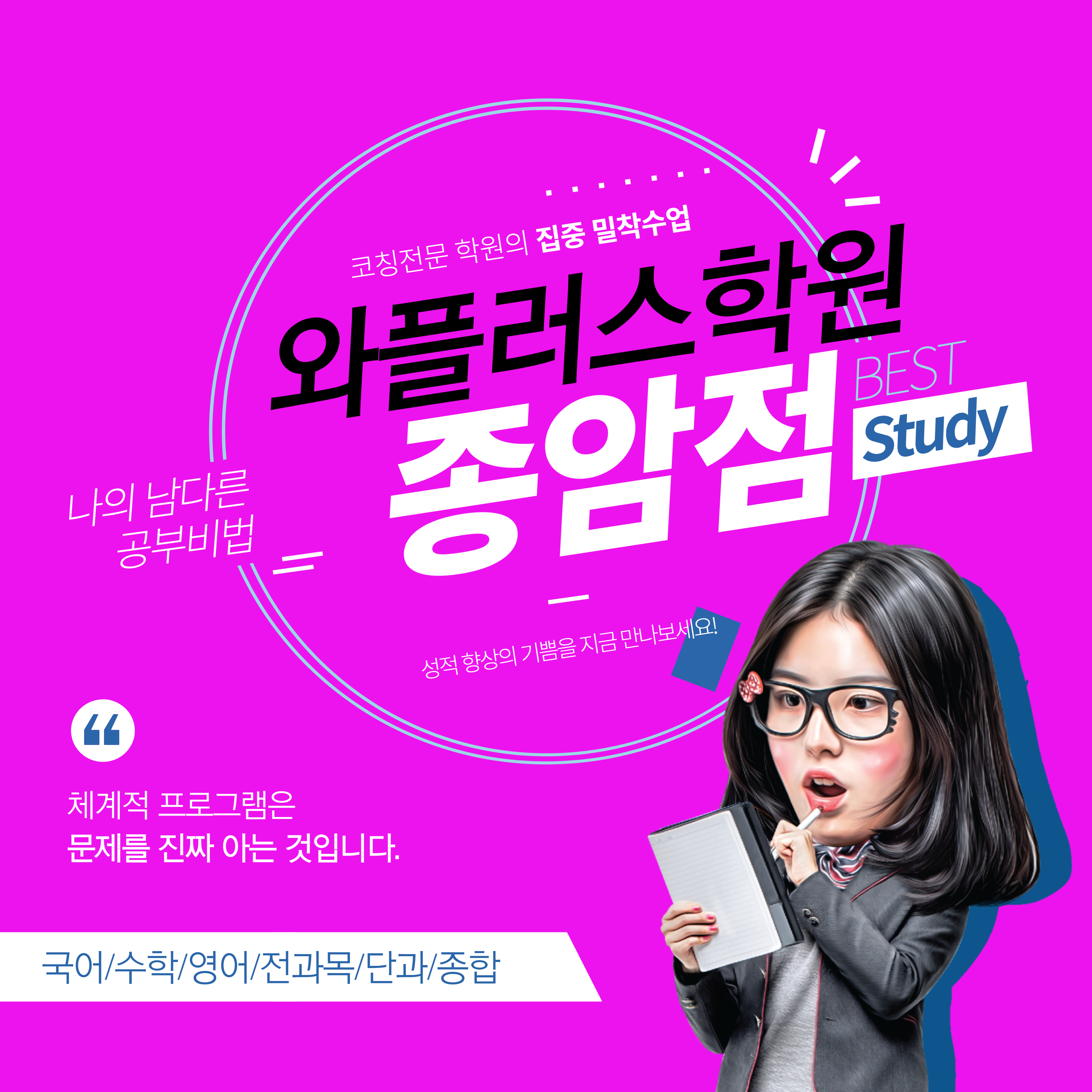 주소 : 인천 서구 새오개로111번안길 23 대릉빌딩 302호 루원시티점 와와학습코칭학원 신현여중, 가현초등학교 3분거리!! 고봉민김밥 옆건물 3층! WA+학습코칭센터 학원 소개 일반 학원과 다른 1대1 개인별 수준에 맞춤 수업 국어&영어&수학, 전과목 학습코칭학원 입니다! 상담이 밀려있어서 100% 예약후 방문 상담이 가능합니다. WA+ 학습코칭학원 소개 및 장점 1. 풍부한 경험과 교육자료를 기반으로 내신/ 입시 완벽 대비합니다. 2. 지역 학교 내신동향은 물론 검증된 교수법과 자체 문제 은행을 보유하고 있습니다. 3. 한수업에 3~8명만 수강인원을 받습니다.(예약제) 4. 개인별 학습 커리큘럼, 개인별 맞춤 교재로 수업합니다. 5. 개별적으로 학습 플래너 관리를 진행합니다. 6. 잘못 형성된 ..