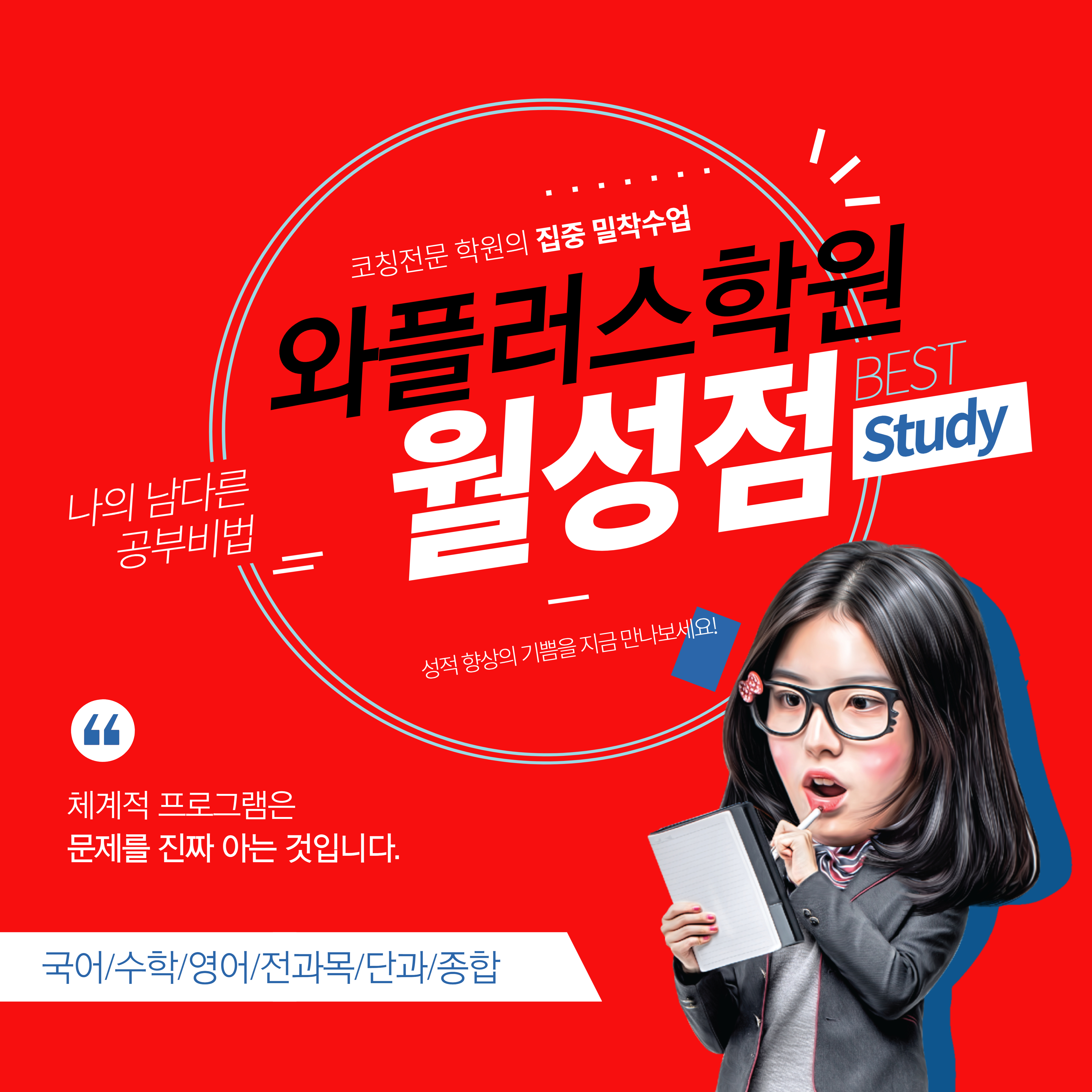 주소 : 대구 달서구 월성동 1848번지 그루타워 702호 신월성와와학습코칭학원 대구월성 CGV, 올리브영 바로 옆건물! 컴포즈커피, 투다리 건물 7층! WA+학습코칭센터 학원 소개 일반 학원과 다른 1대1 개인별 수준에 맞춤 수업 국어&영어&수학, 전과목 학습코칭학원 입니다! 상담이 밀려있어서 100% 예약후 방문 상담이 가능합니다. WA+ 학습코칭학원 소개 및 장점 1. 풍부한 경험과 교육자료를 기반으로 내신/ 입시 완벽 대비합니다. 2. 지역 학교 내신동향은 물론 검증된 교수법과 자체 문제 은행을 보유하고 있습니다. 3. 한수업에 3~8명만 수강인원을 받습니다.(예약제) 4. 개인별 학습 커리큘럼, 개인별 맞춤 교재로 수업합니다. 5. 개별적으로 학습 플래너 관리를 진행합니다. 6. 잘못 형성된..